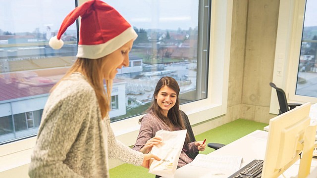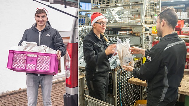 Además de otros obsequios, el personal de RECK recibió una tarjeta de felicitación bajo el árbol de Navidad con un boleto de la lotería «Aktion Mensch».