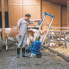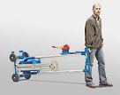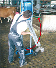 Grazie alla freccia ribaltabile, il motore può essere spostato in basso, abbassando considerevolmente il centro di gravità della agitatore e facilitandone, di conseguenza, la manovrabilità durante il trasporto. In questo caso un carrello di trasporto supplementare non é necessario.